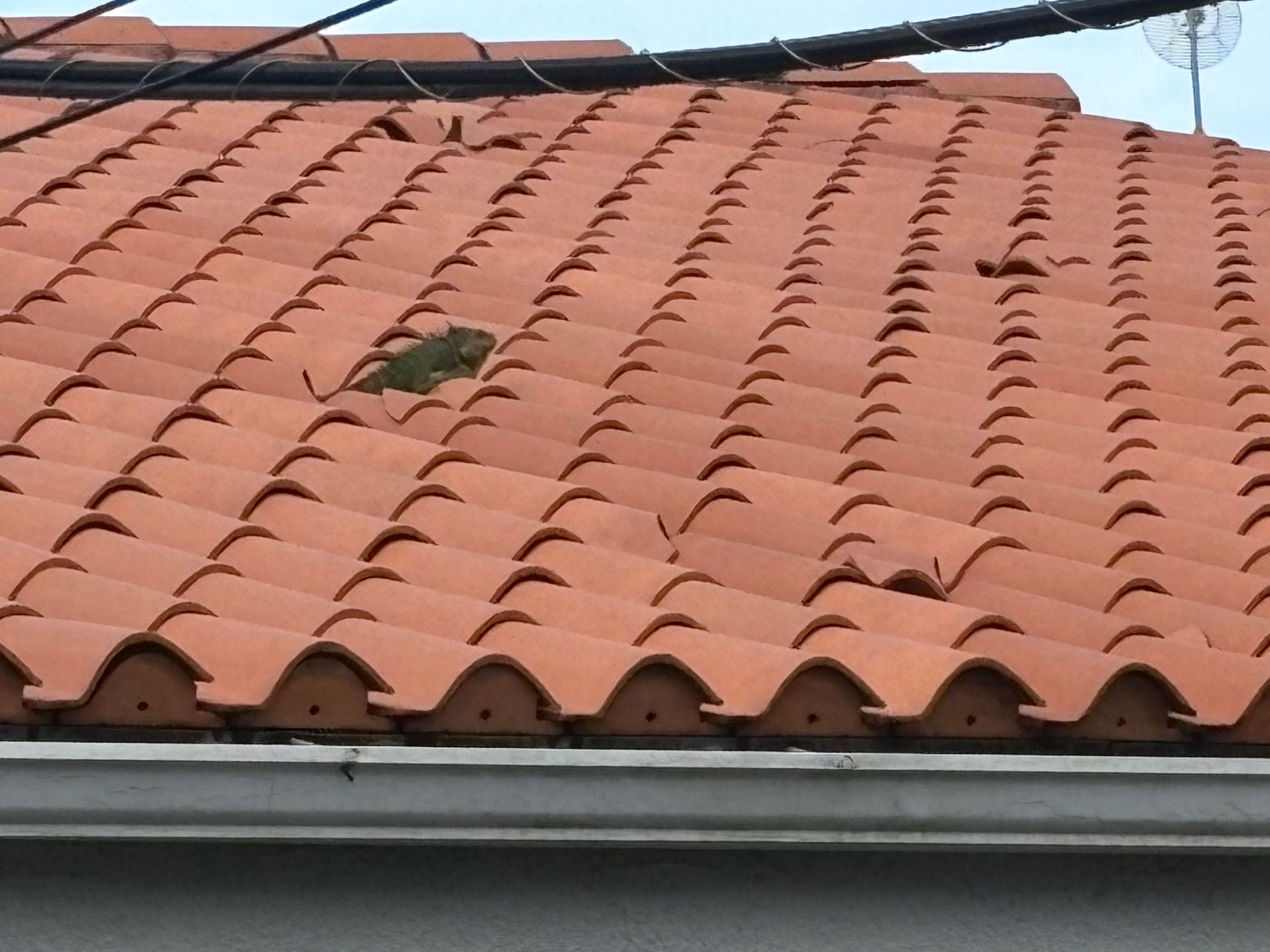 Roof infestations are one of the most common and challenging iguana problems we handle in South Florida. In fact, approximately 30% of our service calls involve iguanas on rooftops, particularly on Mexican tile roofs.